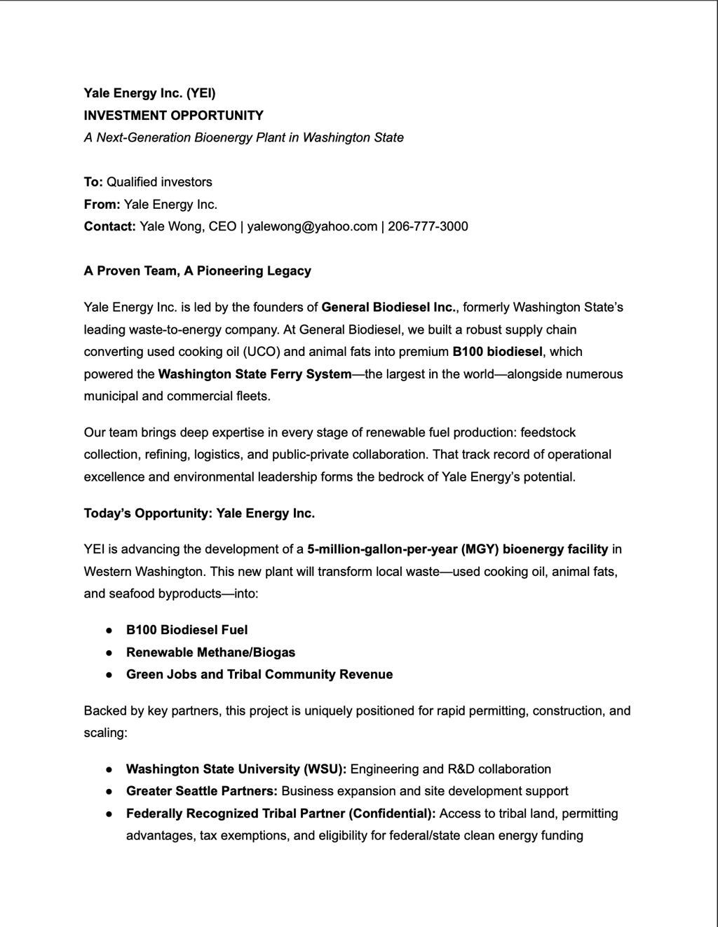 Read our Investment Opportunity letter